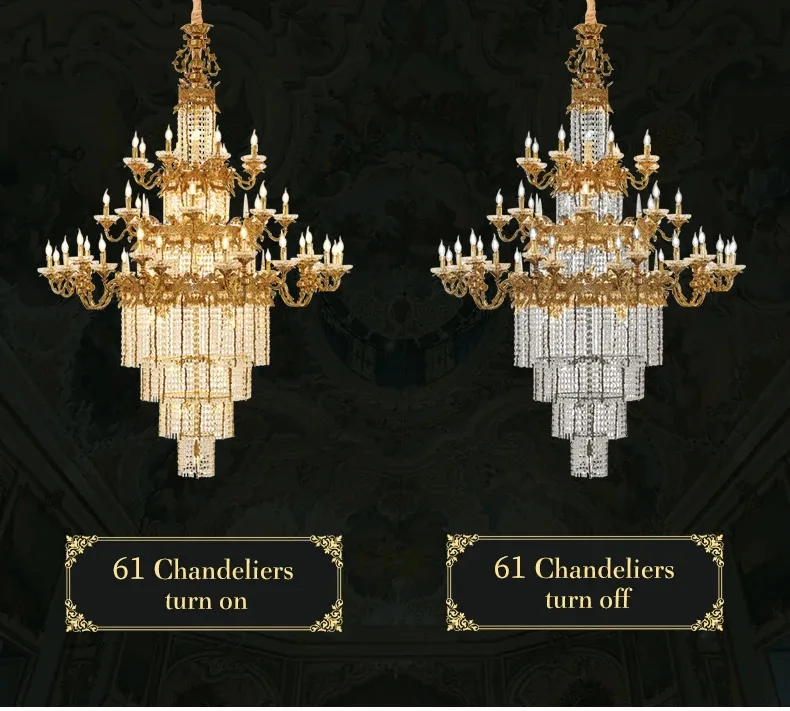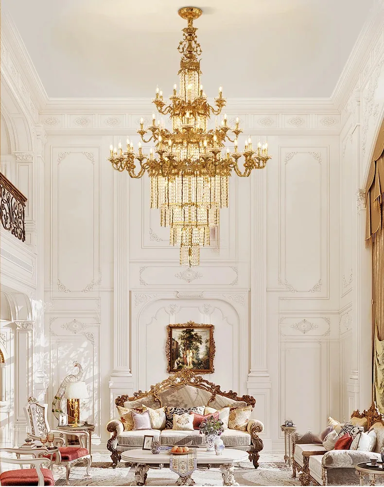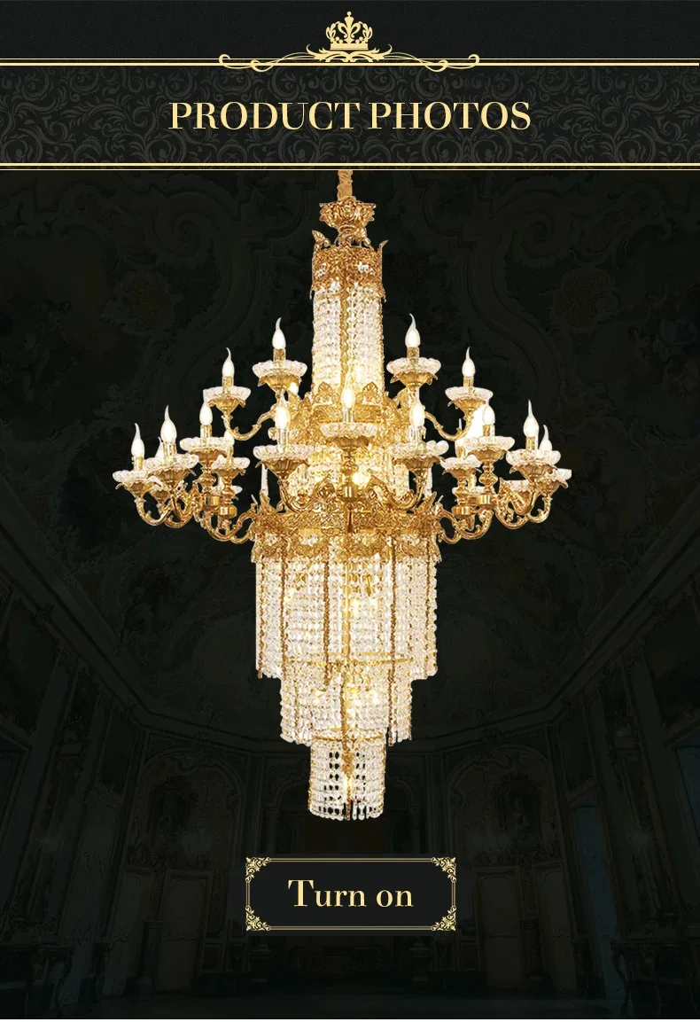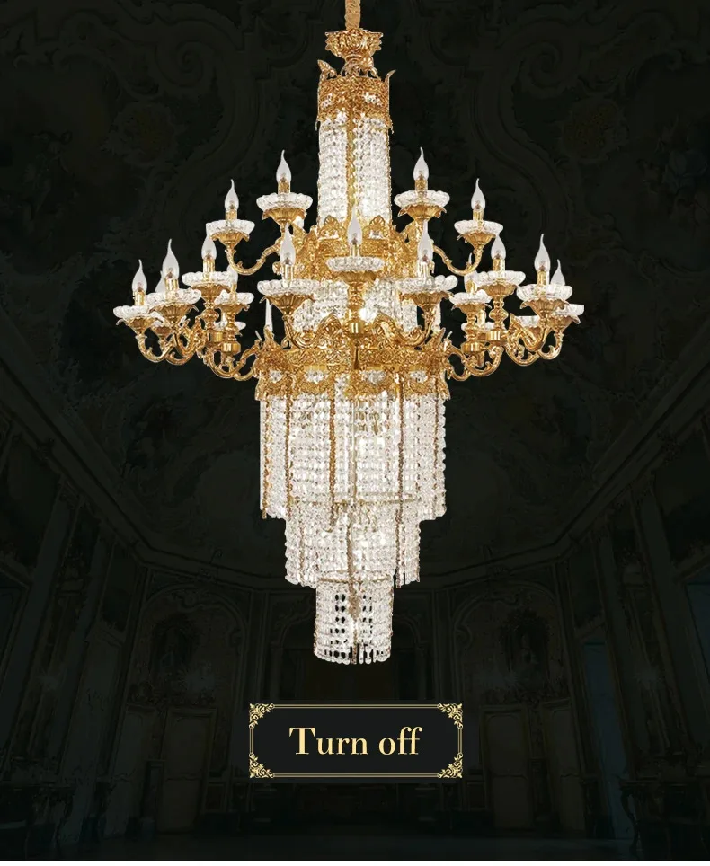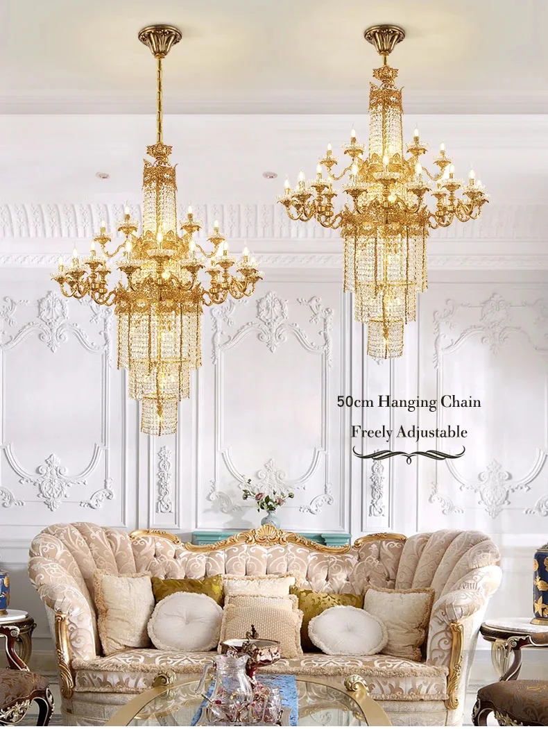 Custom Large Living Room Pendant Light European Luxury Brass Crystal Chandelier For Home Hotel