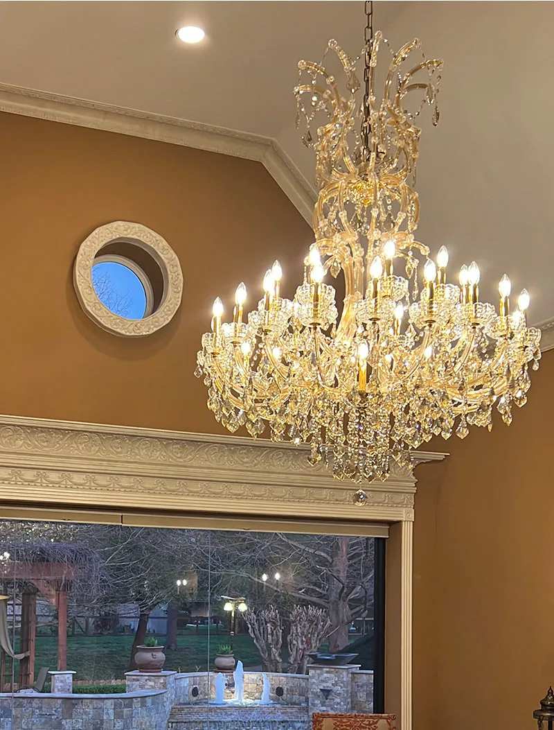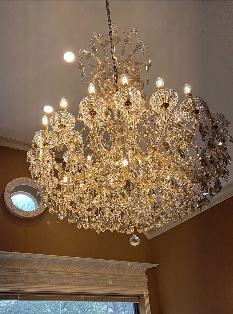 Maria Theresa Crystal chandelier for foyer lobby hallway Gold hanging Lamp home decor large cristal lamp Staircase Ceiling light